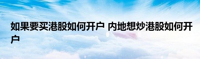 导读 大家好,小理来为大家解答以上的问题。如果要买港股如何开户,内地想炒港股如何开户这个很多人还不知道,现在让我们一起来看看吧!