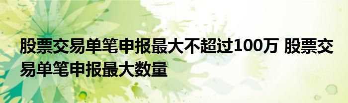 大家好,小理来为大家解答以上的问题。股票交易单笔申报最大不超过100万,股票交易单笔申报最大数量这个很多人还不知道,现在让我们一起来看看吧!