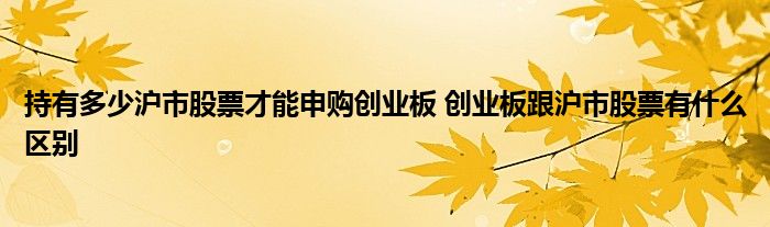 导读 大家好,小理来为大家解答以上的问题。持有多少沪市股票才能申购创业板,创业板跟沪市股票有什么区别这个很多人还不知道,现在让我们一起来看