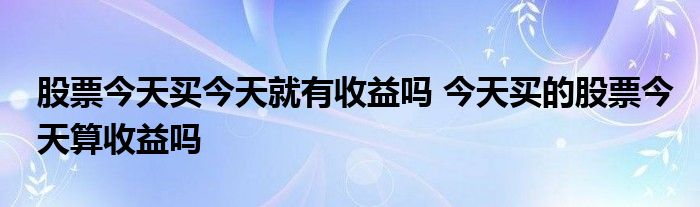 导读 大家好,小理来为大家解答以上的问题。股票今天买今天就有收益吗,今天买的股票今天算收益吗这个很多人还不知道,现在让我们一起来看看吧!