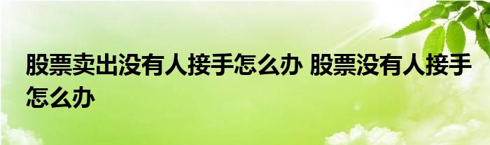 导读 大家好,小理来为大家解答以上的问题。股票卖出没有人接手怎么办,股票没有人接手怎么办这个很多人还不知道,现在让我们一起来看看吧!