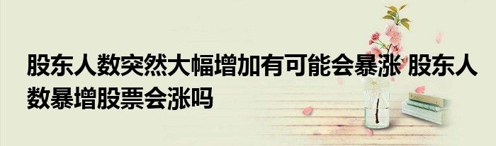 导读 大家好,小理来为大家解答以上的问题。股东人数突然大幅增加有可能会暴涨,股东人数暴增股票会涨吗这个很多人还不知道,现在让我们一起来看看