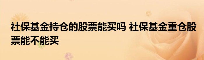 导读 大家好,小理来为大家解答以上的问题。社保基金持仓的股票能买吗,社保基金重仓股票能不能买这个很多人还不知道,现在让我们一起来看看吧!