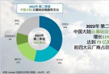 9 月 9 日消息,Canalys 最新报告显示,中国的云基础设施服务支出同比增长 11%,在 2022 年第二季度达到 73 亿美元,占全球整