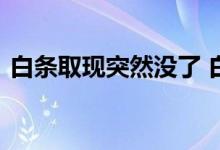 大家好,小理来为大家解答以上的问题。白条取现突然没了,白条取现失败是怎么回事这个很多人还不知道,现在让我们一起来看看吧!