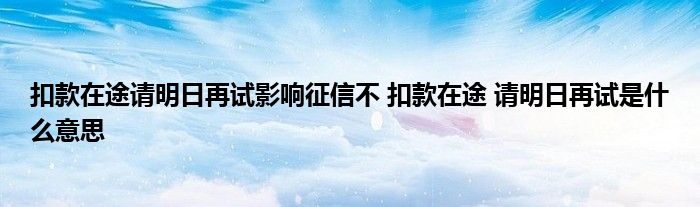 导读 大家好,小财来为大家解答保险的问题。扣款在途请明日再试影响征信不,扣款在途,请明日再试是什么意思这个很多人还不知道,现在让我们一起来
