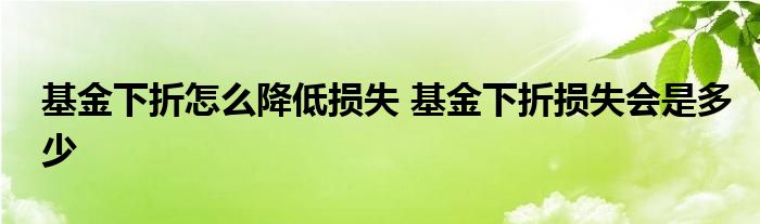 大家好,小基来为大家解答以上的问题。基金下折怎么降低损失,基金下折损失会是多少这个很多人还不知道,现在让我们一起来看看吧!
