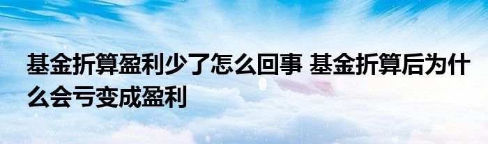 导读 大家好,小基来为大家解答以上的问题。基金折算盈利少了怎么回事,基金折算后为什么会亏变成盈利这个很多人还不知道,现在让我们一起来看看吧