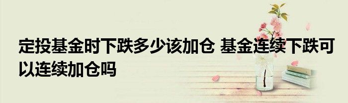 导读 大家好,小基来为大家解答以上的问题。定投基金时下跌多少该加仓,基金连续下跌可以连续加仓吗这个很多人还不知道,现在让我们一起来看看吧!