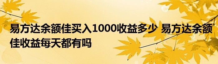 导读 大家好,小基来为大家解答以上的问题。易方达余额佳买入1000收益多少,易方达余额佳收益每天都有吗这个很多人还不知道,现在让我们一起来看看