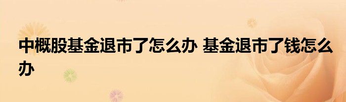 导读 大家好,小基来为大家解答以上的问题。中概股基金退市了怎么办,基金退市了钱怎么办这个很多人还不知道,现在让我们一起来看看吧!