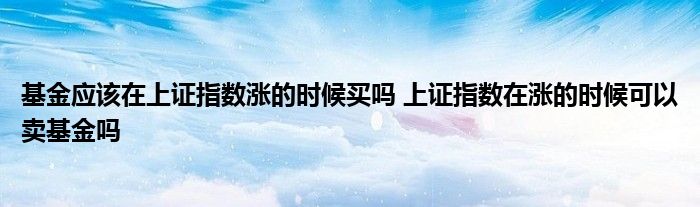 导读 大家好,小基来为大家解答以上的问题。基金应该在上证指数涨的时候买吗,上证指数在涨的时候可以卖基金吗这个很多人还不知道,现在让我们一起