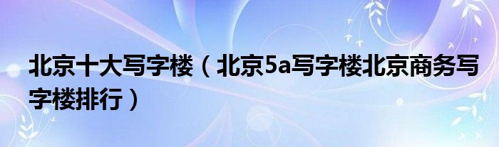 大家好,小源来为大家解答以上问题。北京十大写字楼,北京5a写字楼北京商务写字楼排行很多人还不知道,现在让我们一起来看看吧!