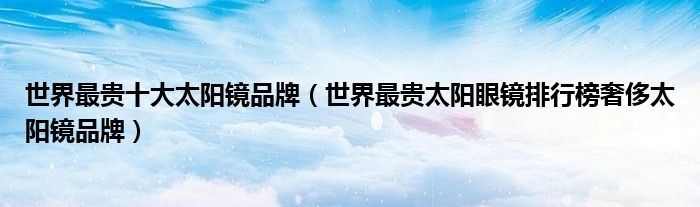 导读 大家好,小源来为大家解答以上问题。世界最贵十大太阳镜品牌,世界最贵太阳眼镜排行榜奢侈太阳镜品牌很多人还不知道,现在让我们一起来看看