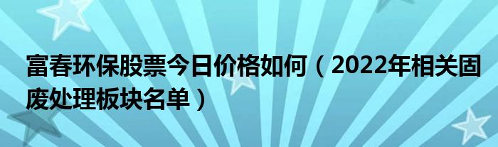导读 大家好,小号哥来为大家解答以上问题,富春环保股票今日价格如何,2022年相关固废处理板块名单很多人还不知道,现在让我们一起来看看吧!富