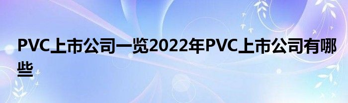 大家好,小号哥来为大家解答以上问题,PVC上市公司一览2022年PVC上市公司有哪些很多人还不知道,现在让我们一起来看看吧!