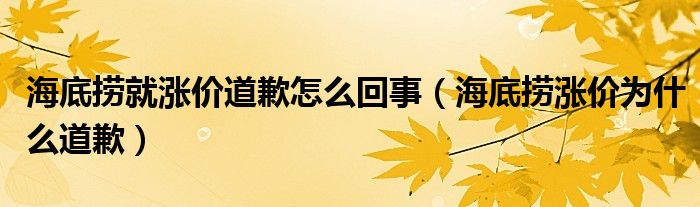导读 大家好,小号哥来为大家解答以上问题,海底捞就涨价道歉怎么回事,海底捞涨价为什么道歉很多人还不知道,现在让我们一起来看看吧! 海底
