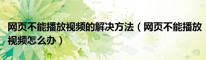 导读 大家好,精选小编来为大家解答以上的问题。网页不能播放视频的解决方法,网页不能播放视频怎么办很多人还不知道,现在让我们一起来看看吧!