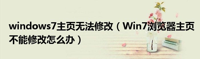 导读 大家好,精选小编来为大家解答以上的问题。windows7主页无法修改,Win7浏览器主页不能修改怎么办很多人还不知道,现在让我们一起来看看吧!