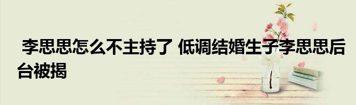 导读 大家好,科普达人来为大家解答以上问题,李思思怎么不主持了,低调结婚生子李思思后台被揭很多人还不知道,现在让我们一起来看看吧!