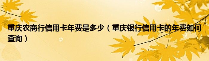 导读 大家好,小元来为大家解答问题。重庆农商行信用卡年费是多少,重庆银行信用卡的年费如何查询这个很多人还不知道,现在让我们一起来了解下吧