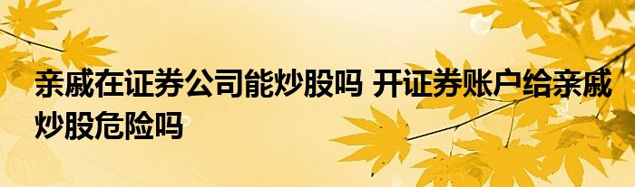 导读 大家好,小理来为大家解答以上的问题。亲戚在证券公司能炒股吗,开证券账户给亲戚炒股危险吗这个很多人还不知道,现在让我们一起来看看吧!