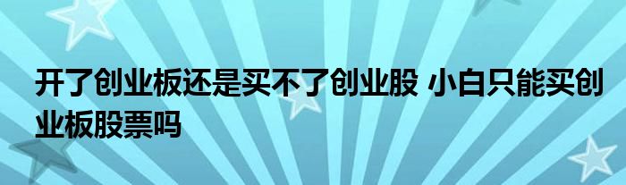 导读 大家好,小理来为大家解答以上的问题。开了创业板还是买不了创业股,小白只能买创业板股票吗这个很多人还不知道,现在让我们一起来看看吧!