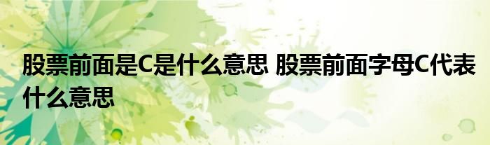 导读 大家好,小理来为大家解答以上的问题。股票前面是C是什么意思,股票前面字母C代表什么意思这个很多人还不知道,现在让我们一起来看看吧!