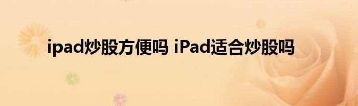 导读 大家好,小理来为大家解答以上的问题。ipad炒股方便吗,iPad适合炒股吗这个很多人还不知道,现在让我们一起来看看吧!
