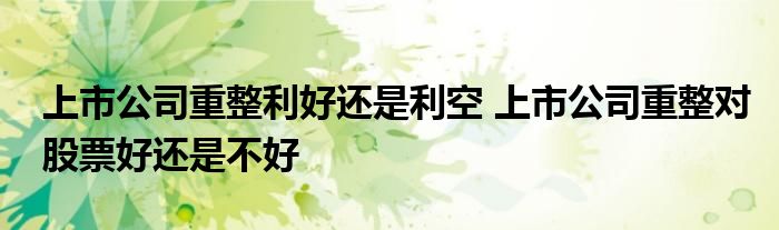 导读 大家好,小理来为大家解答以上的问题。上市公司重整利好还是利空,上市公司重整对股票好还是不好这个很多人还不知道,现在让我们一起来看看吧