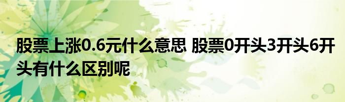 导读 大家好,小理来为大家解答以上的问题。股票上涨0 6元什么意思,股票0开头3开头6开头有什么区别呢这个很多人还不知道,现在让我们一起来看看吧