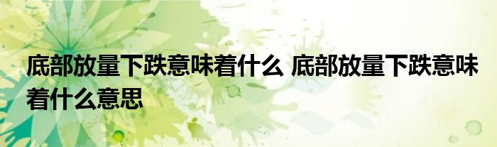 导读 大家好,小理来为大家解答以上的问题。底部放量下跌意味着什么,底部放量下跌意味着什么意思这个很多人还不知道,现在让我们一起来看看吧!