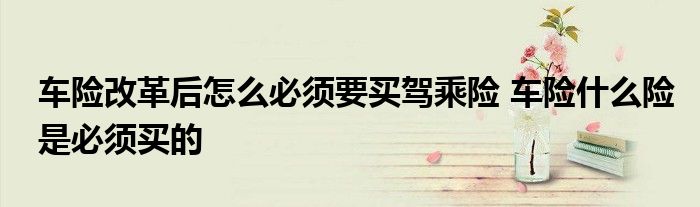 大家好,小全来为大家解答保险的问题。车险改革后怎么必须要买驾乘险,车险什么险是必须买的这个很多人还不知道,现在让我们一起来看看吧!