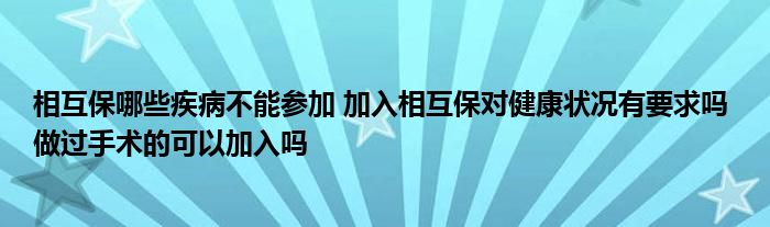 导读 大家好,小理来为大家解答以上的问题。相互保哪些疾病不能参加,加入相互保对健康状况有要求吗,做过手术的可以加入吗这个很多人还不知道,现
