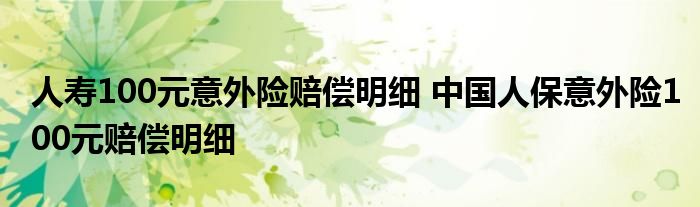大家好,小理来为大家解答以上的问题。人寿100元意外险赔偿明细,中国人保意外险100元赔偿明细这个很多人还不知道,现在让我们一起来看看吧!