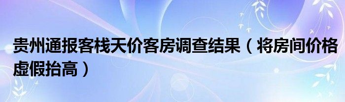 大家好,综合小编来为大家讲解下。贵州通报客栈天价客房调查结果,将房间价格虚假抬高这个很多人还不知道,现在让我们一起来看看吧!