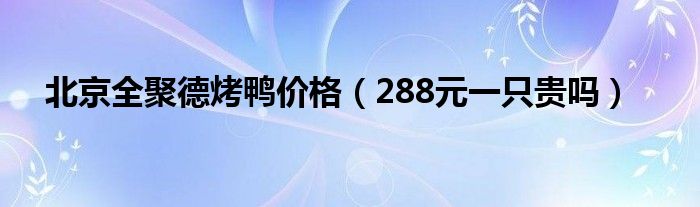 导读 大家好,综合小编来为大家讲解下。北京全聚德烤鸭价格,288元一只贵吗这个很多人还不知道,现在让我们一起来看看吧!1、提起北京烤鸭,属于北