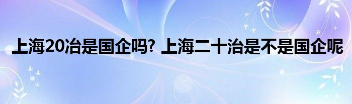 导读 大家好,小元来为大家解答问题。上海20冶是国企吗?,上海二十治是不是国企呢,这个很多人还不知道,现在让我们一起来了解下吧!