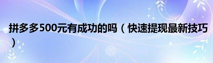 大家好,综合小编来为大家讲解下。拼多多500元有成功的吗,快速提现最新技巧这个很多人还不知道,现在让我们一起来看看吧!