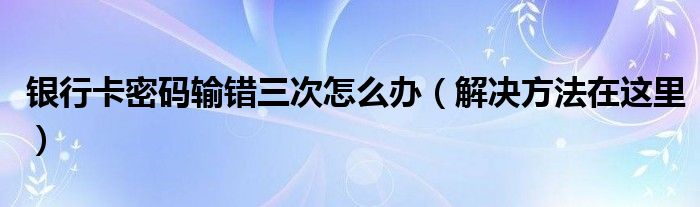 大家好,综合小编来为大家讲解下。银行卡密码输错三次怎么办,解决方法在这里这个很多人还不知道,现在让我们一起来看看吧!