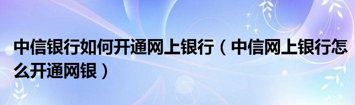 大家好,综合小编来为大家讲解下。中信银行如何开通网上银行,中信网上银行怎么开通网银这个很多人还不知道,现在让我们一起来看看吧!