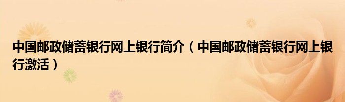 导读 大家好,小卡来为大家解答以上问题。中国邮政储蓄银行网上银行简介,中国邮政储蓄银行网上银行激活很多人还不知道,现在让我们一起来看看吧