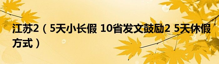 导读 大家好,综合小编来为大家讲解下。江苏2,5天小长假 10省发文鼓励2 5天休假方式这个很多人还不知道,现在让我们一起来看看吧!1、对于上班