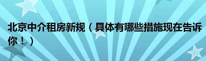大家好,综合小编来为大家讲解下。北京中介租房新规,具体有哪些措施现在告诉你!这个很多人还不知道,现在让我们一起来看看吧!