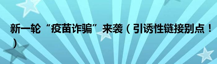 大家好,综合小编来为大家讲解下。新一轮“疫苗诈骗”来袭,引诱性链接别点!这个很多人还不知道,现在让我们一起来看看吧!