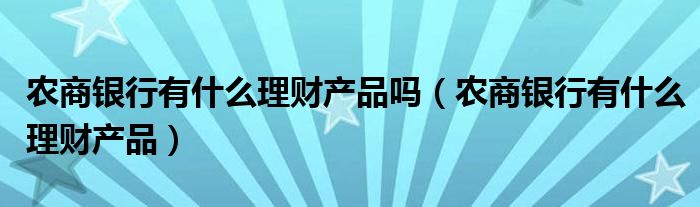 大家好,综合小编来为大家讲解下。农商银行有什么理财产品吗,农商银行有什么理财产品这个很多人还不知道,现在让我们一起来看看吧!