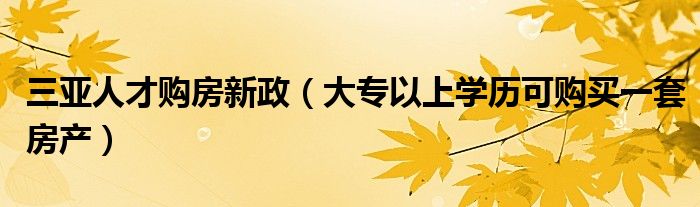 大家好,综合小编来为大家讲解下。三亚人才购房新政,大专以上学历可购买一套房产这个很多人还不知道,现在让我们一起来看看吧!
