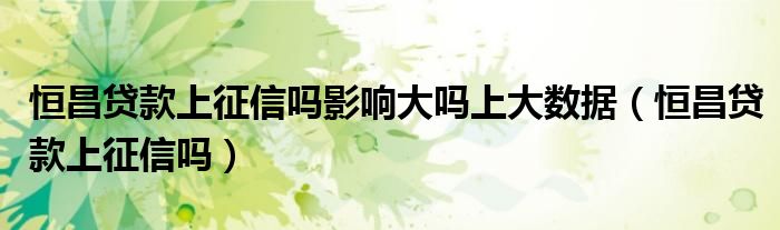 大家好,综合小编来为大家讲解下。恒昌贷款上征信吗影响大吗上大数据,恒昌贷款上征信吗这个很多人还不知道,现在让我们一起来看看吧!