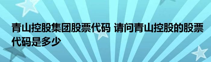 导读 大家好,小元来为大家解答问题。青山控股集团股票代码,请问青山控股的股票代码是多少,这个很多人还不知道,现在让我们一起来了解下吧!