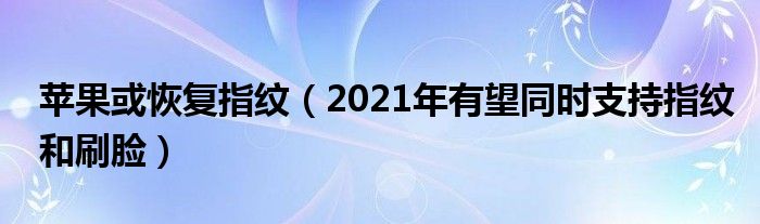 大家好,综合小编来为大家讲解下。苹果或恢复指纹,2021年有望同时支持指纹和刷脸这个很多人还不知道,现在让我们一起来看看吧!